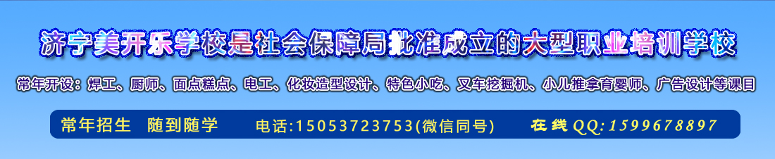 學(xué)技能首選濟(jì)寧美開樂職業(yè)培訓(xùn)學(xué)校。學(xué)院專注于職業(yè)培訓(xùn)16年,誠信辦學(xué),為社會培養(yǎng)21萬余人的各類技能型人才和一大批成功創(chuàng)業(yè)者,讓若干個家庭脫貧致富。濟(jì)寧美開樂職業(yè)培訓(xùn)學(xué)校的特點(diǎn)就是理論聯(lián)系實(shí)際,根據(jù)社會需求,鍛煉學(xué)員的動手能力,在短時間內(nèi)培養(yǎng)技能型人才。學(xué)院下設(shè)21個培訓(xùn)中心30個專業(yè),其中特色品牌專業(yè)有:汽車駕駛、焊工、電工、電氣自動化、機(jī)電制冷、挖掘機(jī)培訓(xùn)、裝載機(jī)、數(shù)控機(jī)床、汽車維修、汽車美容、廚師培訓(xùn)、烘焙糕點(diǎn)、中式面點(diǎn)、會計(jì)、會計(jì)電算化、計(jì)算機(jī)應(yīng)用、平面設(shè)計(jì)、計(jì)算機(jī)調(diào)試與維修、電腦工業(yè)制圖、網(wǎng)頁制作、美發(fā)、美容、美甲、化妝、創(chuàng)業(yè)輔導(dǎo)、公共營養(yǎng)師、健康管理師、養(yǎng)老護(hù)理員、月嫂、家政服務(wù)等,學(xué)制1——3個月,隨到隨學(xué),在此期間足以掌握獨(dú)立上崗的技能,根據(jù)專業(yè)需求還開設(shè)9個月的全科進(jìn)修班,完成學(xué)業(yè)都頒發(fā)結(jié)業(yè)證,辦理《中華人民共和國職業(yè)資格證書》、《中華人民共和國特種作業(yè)操作證》及其它相應(yīng)證書,持證就業(yè)上崗。